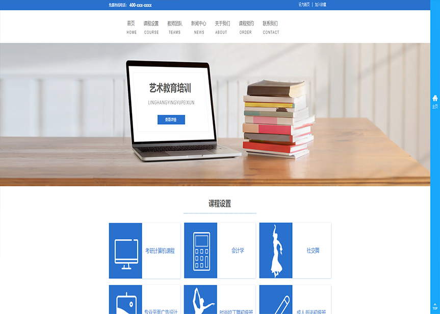 模板名稱(chēng):(帶手機(jī)版數(shù)據(jù)同步)自適應(yīng)教育培訓(xùn)類(lèi)藍(lán)色通用網(wǎng)站模板